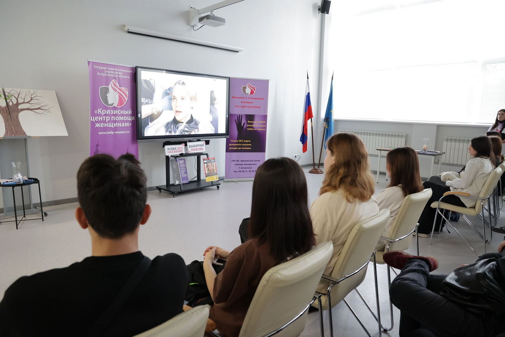 В рамках Недели психологии Астраханский государственный политехнический колледж посетили специалисты Кризисного центра помощи женщинам. Студентам групп ПНГ-1209, СЭН-1209, ИСП-1209, ТУ-2109, ТГ-1201 они рассказали о международной акции «16 дней против насилия», которая проводится по всему миру под эгидой ООН и является одной из активных форм проведения профилактической работы против насилия в отношении женщин и детей.