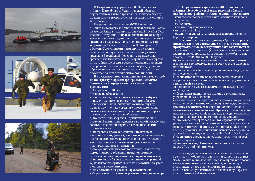 Пограничное управление ФСБ России по г. Санкт-Петербургу и Ленинградской области приглашает на службу по контракту