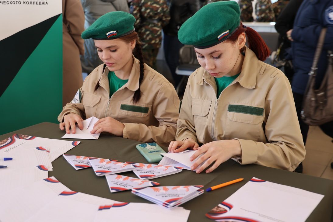 В здании вокзала студенты Астраханского государственного политехнического колледжа, а также бойцы патриотического клуба «Наследники Победы» предоставили возможность жителям и гостям города написать письма участникам специальной военной операции.