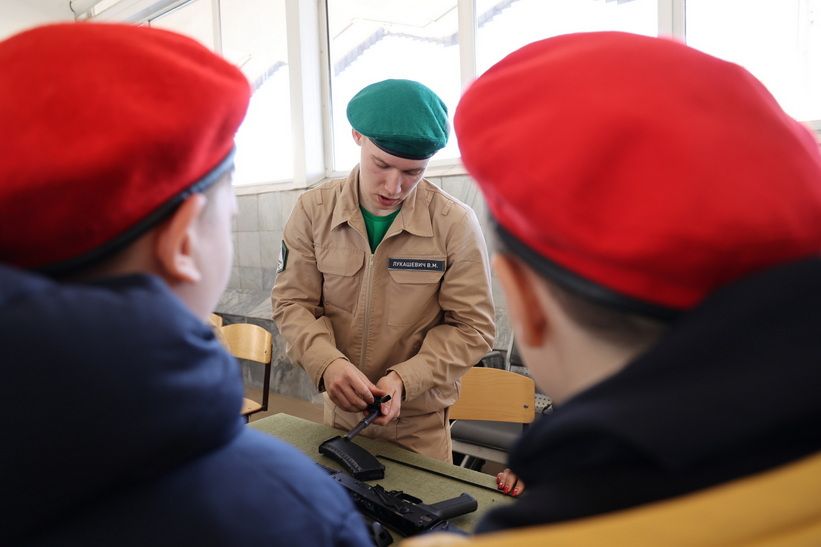 Руководитель патриотического клуба «Наследники Победы» - Коленко Артем Витальевич и преподаватель колледжа Смирнов Олег Борисович вместе с бойцами поделились навыками плетения маскировочных сетей, а также организовали обучение по сборке и разборке автоматов.