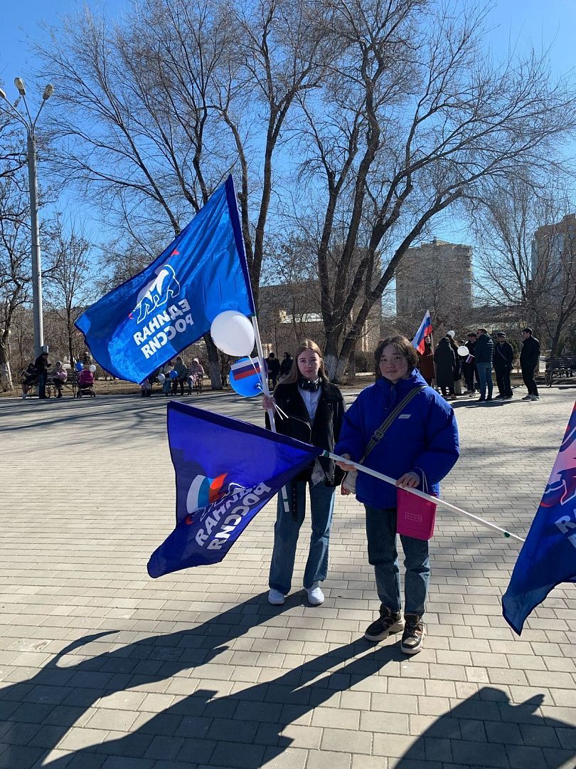 С приветственным словом со сцены к астраханцам обратился губернатор Астраханской области Игорь Бабушкин, который отметил, что наша страна всегда защищала и защищает мир и свободу, своих граждан, своих братьев, что какое именно будущее ждёт россиян, решать только самим жителям Российской Федерации.
