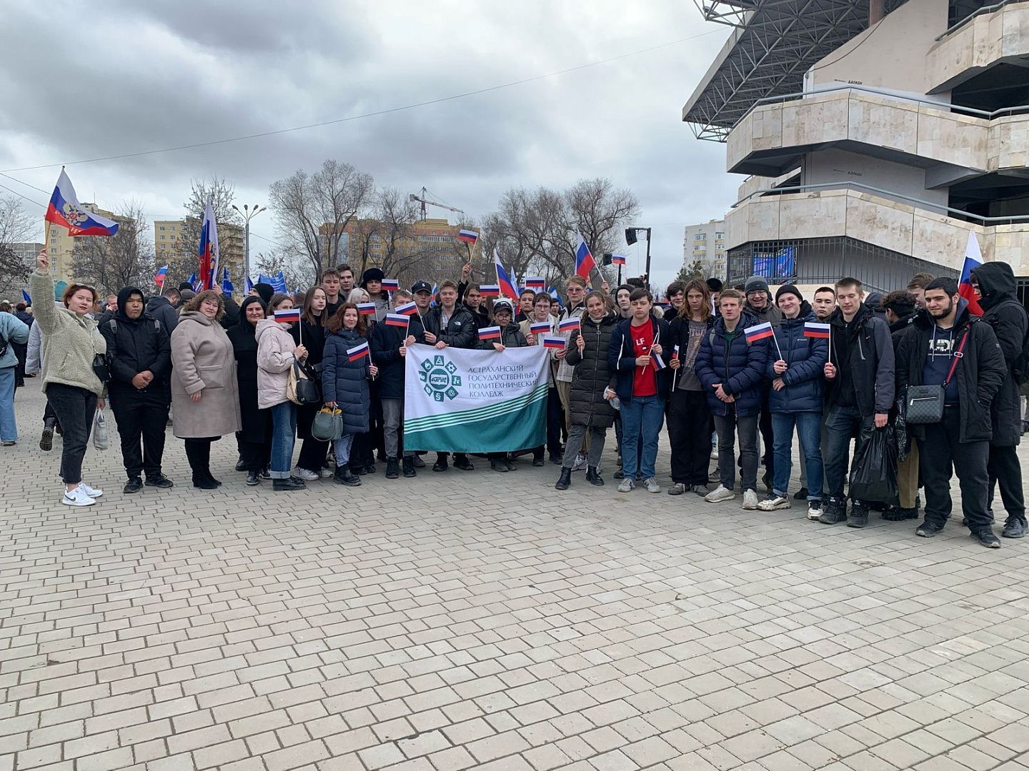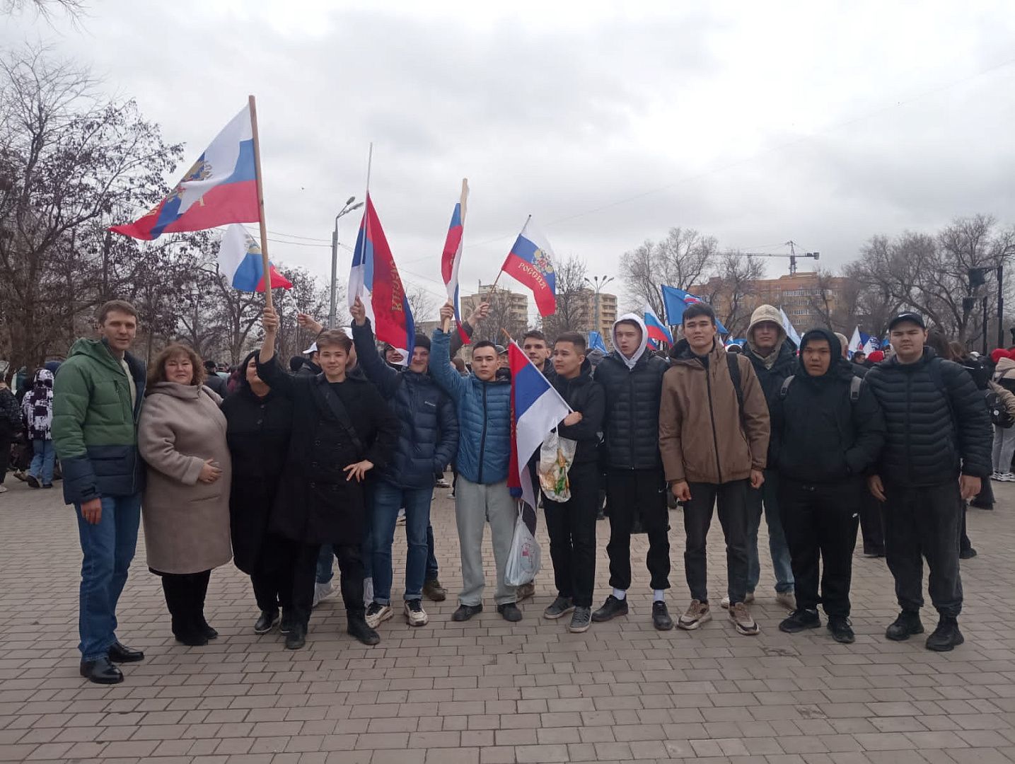 Десятую годовщину воссоединения Крыма и Севастополя с Россией отметили в Астрахани праздничным концертом в парке «Аркадия». На мероприятии собрались сотни неравнодушных астраханцев, в том числе студенты и преподаватели политехнического колледжа.