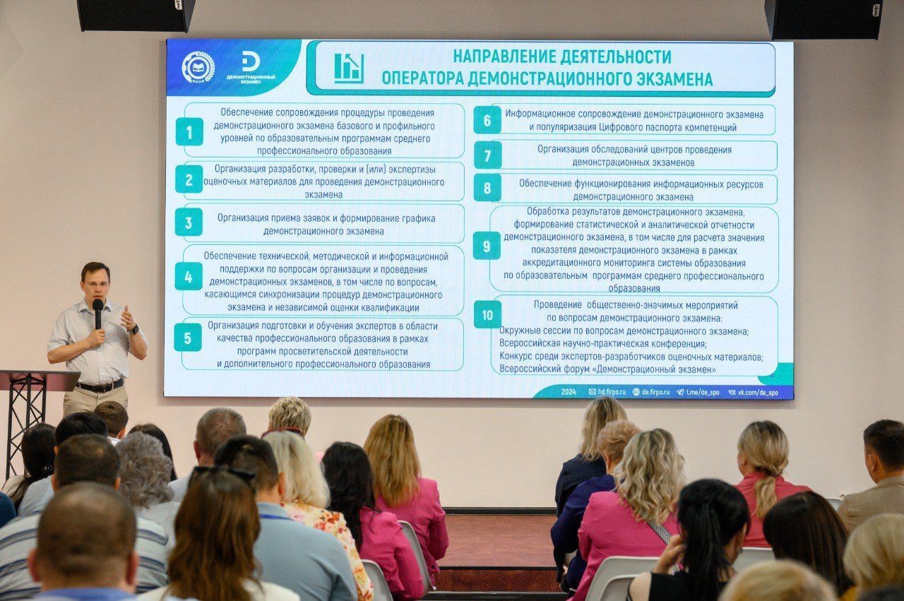 - пленарное мероприятие Окружной сессии «Организация и проведение ГИА по образовательным программам СПО в форме демонстрационного экзамена в 2024 году»;