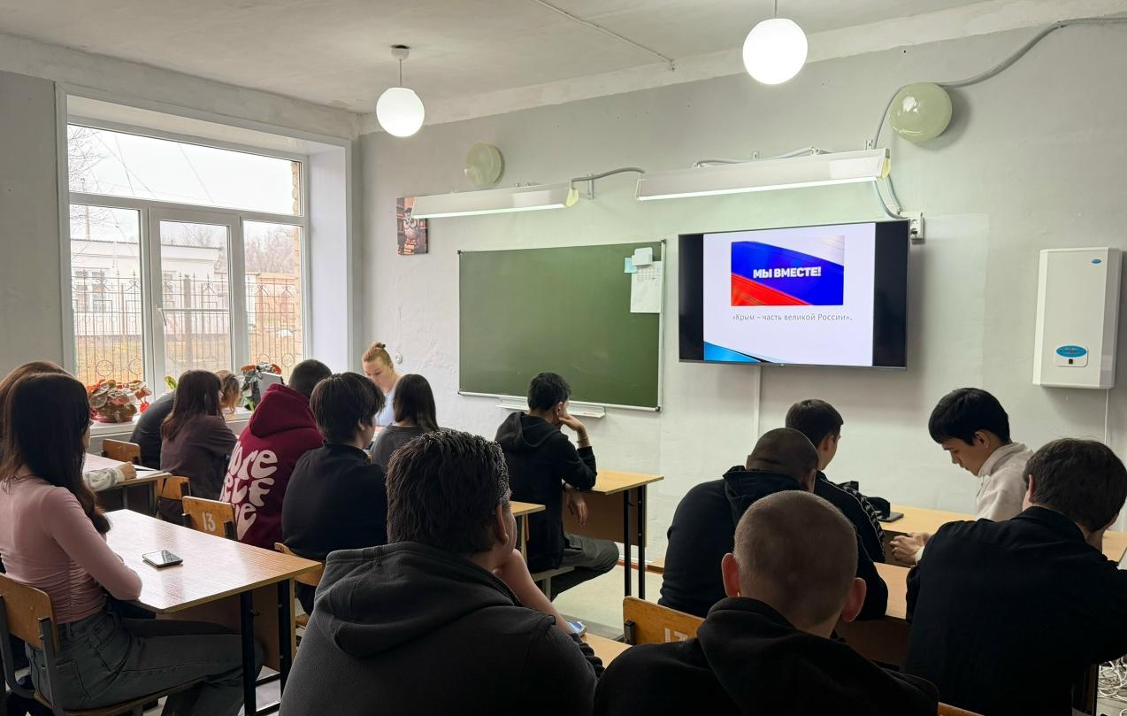 18 марта 2026 года в Лиманском филиале Астраханского государственного политехнического колледжа (АГПК) прошли мероприятия, приуроченные к памятной дате — годовщине воссоединения Крыма и Севастополя с Россией.