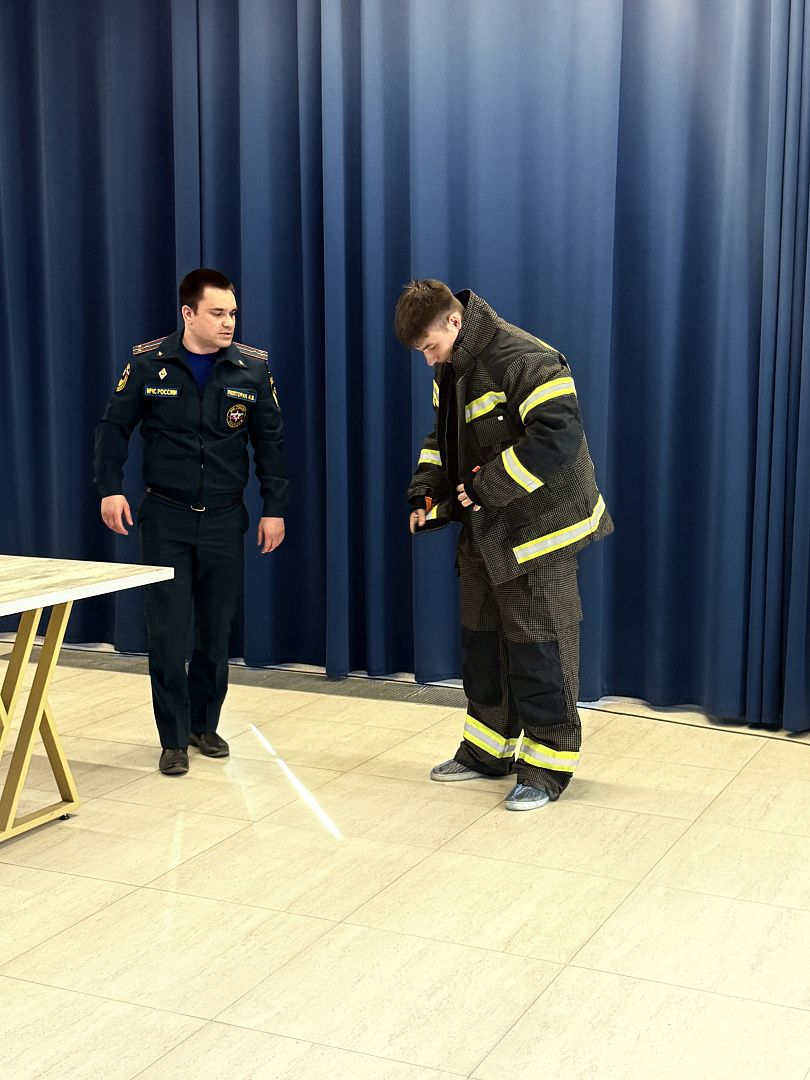 2. Мастер‑класс от МЧС, где сотрудники ведомства продемонстрировали навыки оказания первой помощи. Студенты смогли отработать базовые приёмы на практике. Один из участников даже примерил форму спасателя.