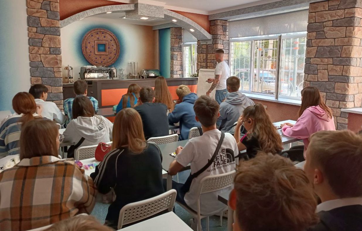 Александр также поделился с ребятами своими личными опытом и знаниями о современном барном искусстве. Он рассказал о тенденциях в мире коктейлей, о новых технологиях и ингредиентах, о важности творческого подхода в создании напитков.