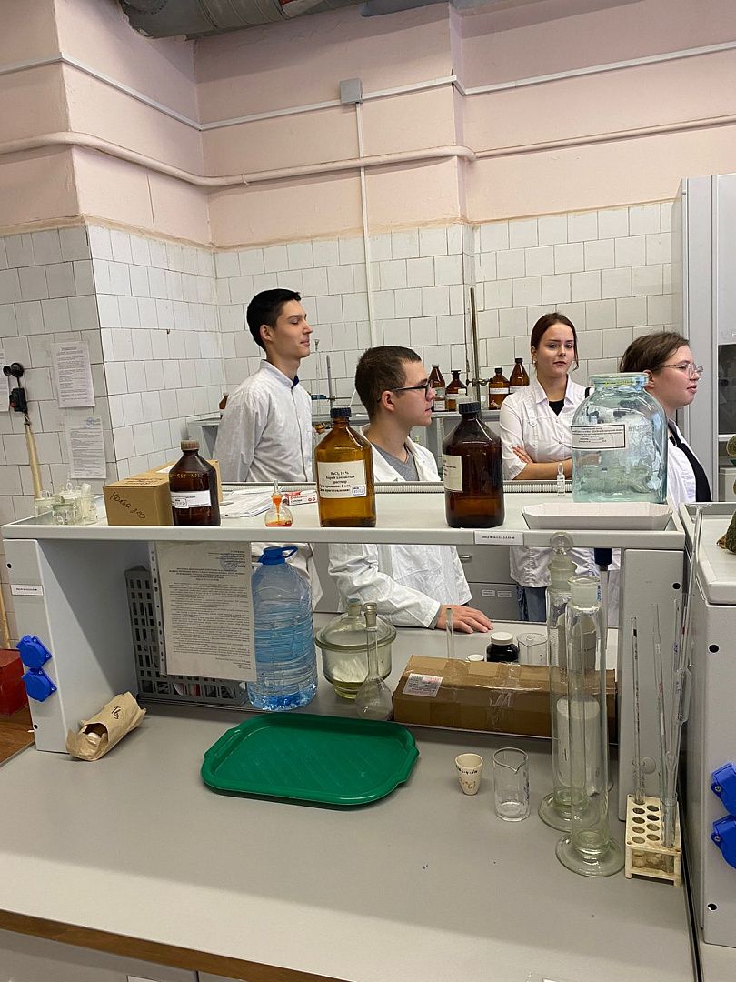 Экскурсию провела начальник химико-аналитического отдела Ирина Вячеславовна Фёдорова. Студентов познакомили с организацией работы лаборатории: от отбора и регистрации пробы до выдачи результатов испытаний.