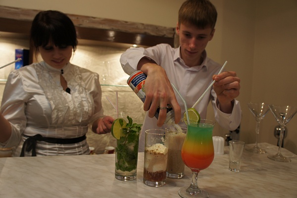 Праздничное блюдо и яркие, коктейли не оставили равнодушными даже самых взыскательных зрителей. Участники рассказали об истории создания блюд и коктейлей, продемонстрировали процесс приготовления, угостили ведущую и всю съемочную группу своими шедеврами и по традиции поздравили всех с новым 2013 годом! Рассказ о коктейлях, как о чем-то утонченно-изысканном, не терпящим суетливости и требующим к себе повышенного внимания, показал то, насколько ребята знают и любят дело, которым занимаются. Наши бармены, поделились мнением, что, несмотря на все существующее многообразие, нет ничего приятнее, чем придумывать собственные рецепты, где полет фантазии может быть неограниченным. Это касалось и очередного авторского блюда «Ягненок с сырным крокером», которое, как нельзя, кстати, подходило к новогоднему столу. Как прокомментировал наш шеф-повар: «Несмотря на то, что праздничный стол это не просто список определенных блюд, но и многолетние традиции, красота оформления, а также мастерство, девизом для приготовления моего блюда стала фраза – просто, быстро, вкусно, необычно!» Мы надеемся, что наши новогодние рецепты не только порадовали змею, но и не разозлили дракона.