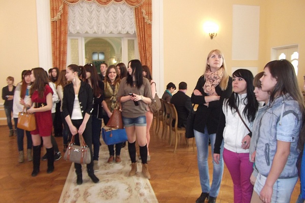 Нашим студентам была предложена экскурсия по зданию Дворца бракосочетания, ребята посетили большой традиционный зал заключения брака и малый зал, выполненный в европейском стиле. Также студенты побывали в Музее Дворца бракосочетания. На встрече присутствовали специалисты Пенсионного фонда РФ и Органов социальной защиты населения, которые рассказали о социальных выплатах и гарантиях семьям, имеющим детей.