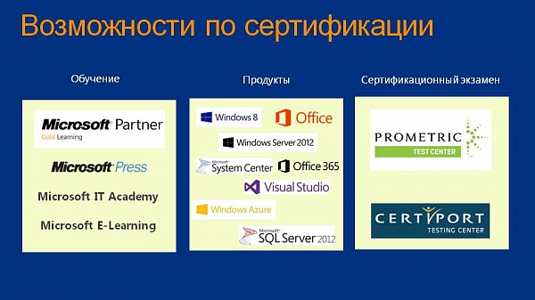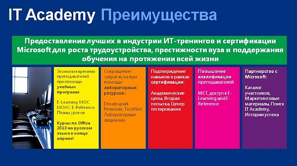 - возможность повышения квалификации преподавателей в области ИКТ и сертификацию по технологиям Microsoft.