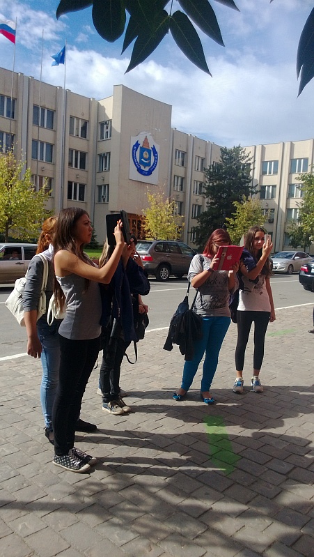«Всем известно, что Земля начинается с Кремля», – говорится в известном стихотворении. Вот свой туристический маршрут студенты начали от Астраханского кремля. Общее число посещенных объектов – более 22-х. Информацию об достопримечательностях города на протяжении всего туристического маршрута студенты групп ТУ-123 и ГС-216 получали с помощью гаджетов. Гаджеты (планшеты и сотовые телефоны) давно стали неотъемлемой частью повседневной жизни современного человека. По пути следования зеленой стрелы студенты сканировали таблички с кюар-кодами, размещенными на объектах, и получали информационные сообщения. При помощи QR-кодов за 3 часа студенты ознакомились с рядом достопримечательностей города. Наш город, третий в России, вслед за Питером и Москвой вошел в международный проект, объединяющий информацию о памятниках России на сайте.