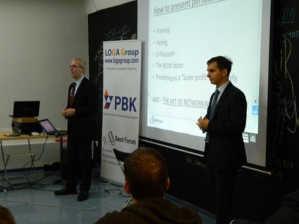 В перерывах проводились тренинги, посвященные выбору варианта и особенностям привлечения средств в проект. Форматы представления инновационного проекта бизнес-ангелам, венчурным фондам. Составление резюме, бизнес-предложения, презентации проекта, ведение переговоров с потенциальным инвестором.