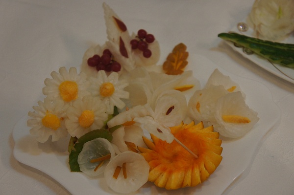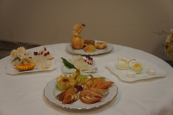 Студенты проявили искренний интерес к искусству карвинга. На выставке были представлены вырезанные из овощей цветы, композиции на темы «Осень», «Лебединая верность», «Любовь». Эти удивительные композиции произвели неизгладимое впечатление и все признали, что они украсят любой праздничный стол!