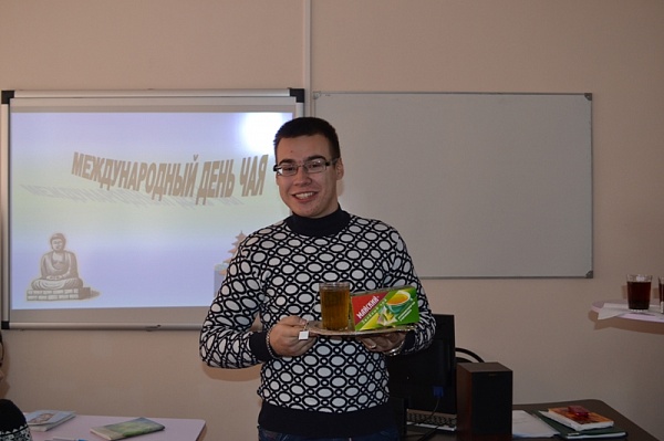 О происхождении чая, его видах и правилах заваривания, рассказали студенты группы ТЭ-314, отмечая Всемирный день чая. Это мероприятие проводилось в рамках работы кружка «Товаровед моя профессия». Студенты специальности 100801 Товароведение и экспертиза качества потребительских товаров порекомендовали различные виды чая для людей, заботящихся о своем здоровье: чай от простуды и усталости, для внимательности и бодрости; рассказали об экзотических видах чая с непривычными названиями: «Мате», «Ройбос» и предложили продегустировать красный, черный и зеленый чай студентам группы ЭУ 231.
