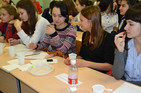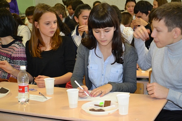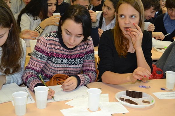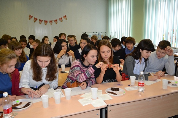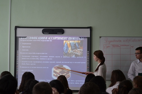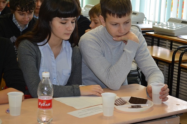 На отделении экономики и права проведено открытое мероприятие профориентационной направленности. Были приглашены учащиеся 8, 9 классов СОШ №24. В ходе мероприятия студенты третьего курса специальности 100801 Товароведение и экспертиза качества потребительских товаров рассказали школьникам о своей будущей профессии, показали приемы органолептической оценки качества товаров. Школьникам было предложено самостоятельно провести идентификацию видов шоколада с дегустацией и сделать заключение о его подлинности.