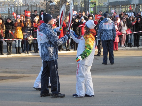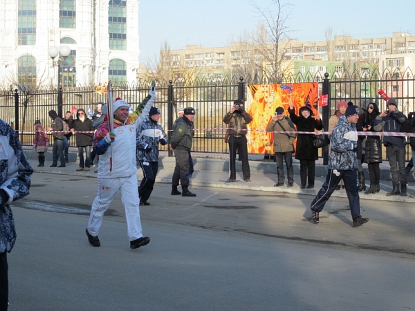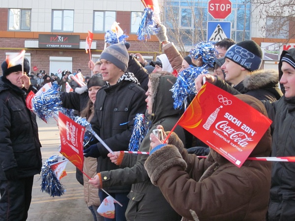 Студенты и преподаватели провожали колонну с олимпийским огнем преисполненные чувством гордости от того, что стали частичкой Зимней Олимпиады 2014 года.