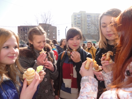 Вся неделя была пронизана праздничной атмосферой Масленицы. 1.03.2014г. проводы зимы отмечали отделение Экономики и права и отделение Сервисных технологий.
