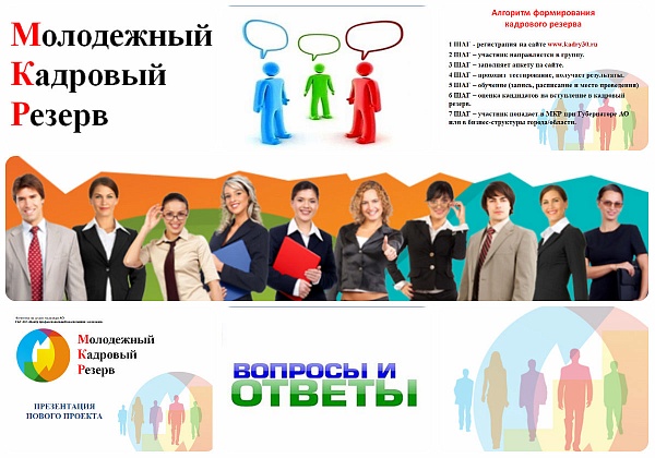 Целью проекта «Молодежный кадровый резерв» является повышение профессиональных знаний и навыков, необходимых для успешной профессиональной самореализации и дальнейшего трудоустройства старших школьников, студентов СУЗов и ВУЗов, а также молодых специалистов Астраханской области.