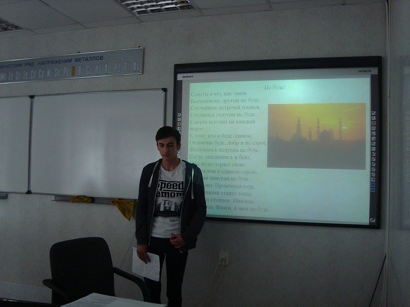 В группе РЭМ 141-9 механического отделения прошел классный час, посвященный жизни и творчеству великого туркменского поэта Мухтумкули Фраги. Студенты рассказали присутствующим не только о жизненном пути Мухтумкули, но и об Астраханском следе в судьбе мыслителя. Махтумкули Фраги посещал астраханскую землю несколько раз, начиная с 1760 года. Как высокообразованный и религиозный человек, он посещал медресе при мечети села Фунтово, учил детей арабской графике, ездил в расположенную в Астрахани мечеть. Оставил свои рукописи поэт и в библиотеке медресе мечети Фунтово-2.