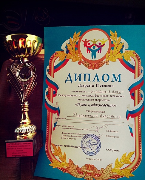 В номинации « Эстрадный вокал» Анастасия Фиалковская была лучшей и заслуженно получила диплом Лауреата 2-ой степени.