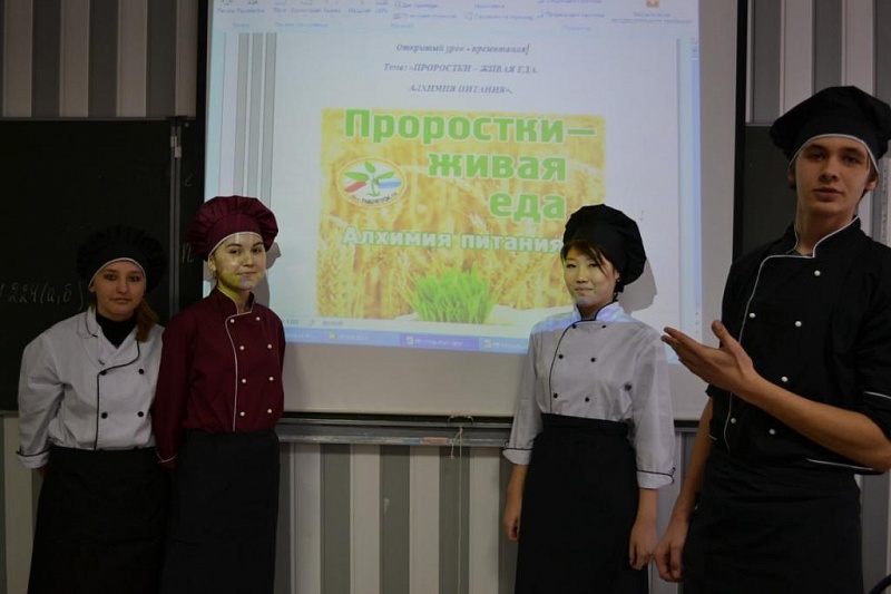 На отделении сервисных технологий в рамках профессионального модуля ПМ.03 «Организация процесса приготовления и приготовление сложных горячих блюд» и ПМ.07 «Выполнение работ по профессии «Повар»», в рамках изучения темы «Приготовление сложных горячих блюд из круп, бобовых, макаронных изделий, проростков злаков и семян», в группах ТП 2-4 курсов прошел открытый урок-презентация «Проростки – живая еда. Алхимия питания». Его подготовила и провела преподаватель спец. дисциплин Е.Н. Попова. Активное участие в подготовке урока и мастер-классе приняли студенты гр. ТП-282: Кутлина О., Абрамов К., Кашин А., Зуева А., Каширская Е., Измайлова М., Насамбаева А, Гаглоева Д.