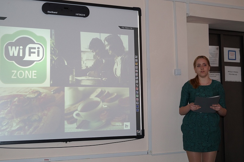 На базе информационной лаборатории профессионального иностранного языка 13 апреля прошла защита исследовательского проекта “Café of my dream”. Подготовка и защита проекта проходила под руководством преподавателя английского языка Т.В. Яицковой.