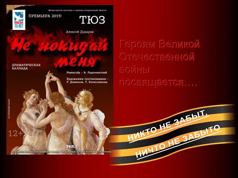 Спектакль поставлен молодым режиссером А. Радочинским по одноименной драматической балладе Алексея Дударёва.