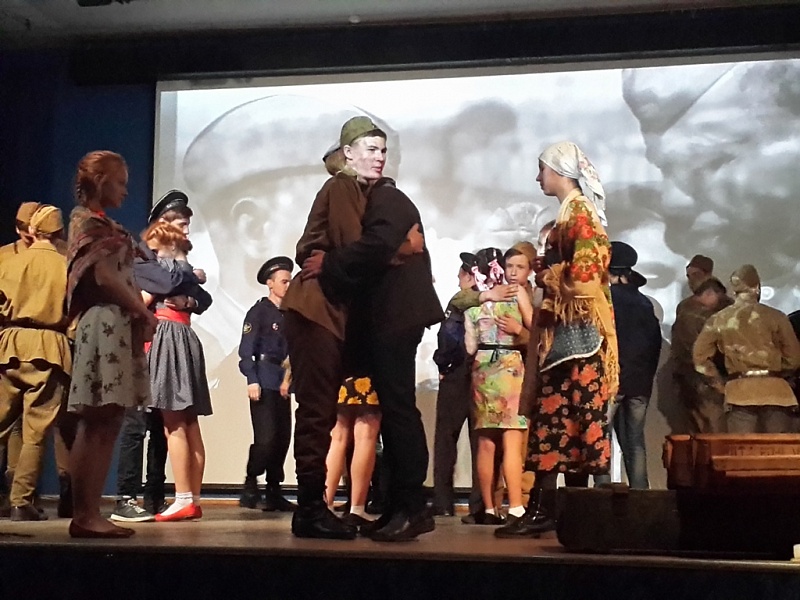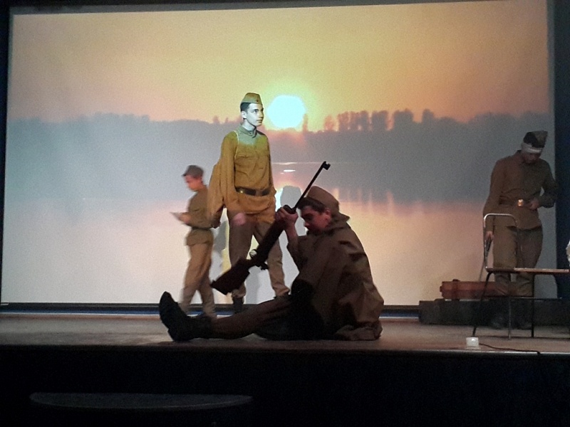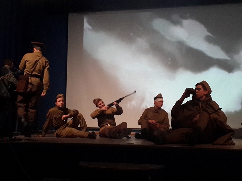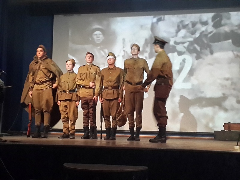 Далее более 30 студентов отделения информационных технологий и дизайна представили присутствующим театрализованное действо. Постановка отразила события Великой Отечественной войны – от проводов 1941 года до освобождения Европы; в ней также были отражены переживания советского народа через чувства главного героя, отношение нынешнего поколения к ветеранам и погибшим в годы Великой Отечественной войны.