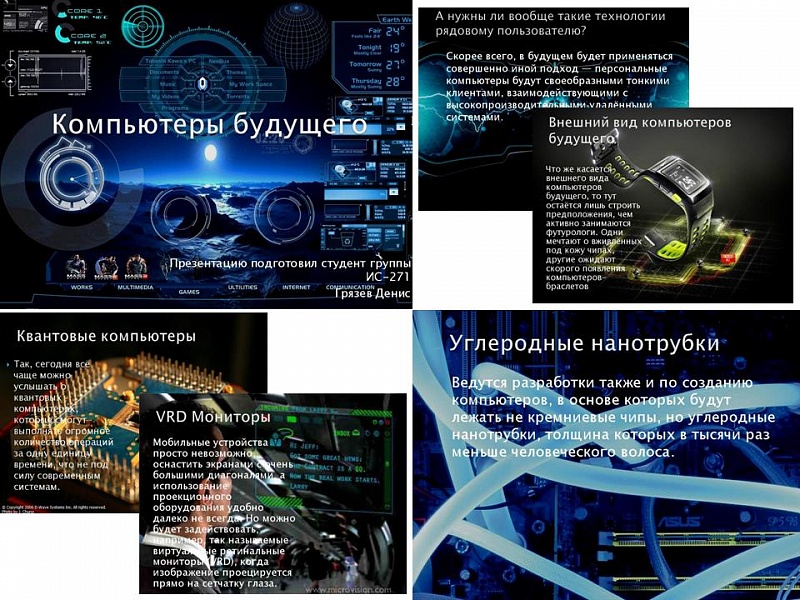 На конкурс было представлено 9 работ, в которых студенты отразили свои мысли, догадки, предположения относительно развития и применения мощной вычислительной техники в будущем. Особенно жюри в составе преподавателей Салиховой К.Г. и Просенюк Н.В. отметили работы студентов группы ИС271 Пешкурова Алексея и Брилева Игната, а также работу студентки группы ИС371 Серебренниковой Анастасии. Баллы среди участников распределились следующим образом: