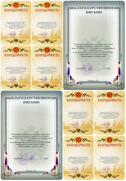 Преподаватели и студенты отделения сервисных технологий представили инновационные идеи на фестивале «Мы славной Победы внуки!». От Ассоциации творческих педагогов Астраханской области выступающие получили заслуженное одобрение.