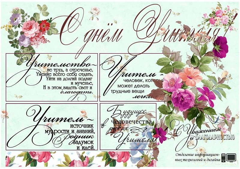 Администрация отделения информационных технологий и дизайна поздравляет администрацию, всех преподавателей, сотрудников Астраханского государственного политехнического колледжа с профессиональным праздником! Пусть будет порядок в журнале и в личной жизни, пусть почаще встречаются хорошие студенты и книги, и всегда будет повод по-настоящему счастливо улыбнуться!