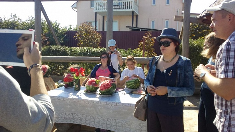 Студенты отделения сервисных технологий приняли участие в Международном туристическом проекте «Южный базар. Этноярмарка». Выставочная экспозиция по карвингу представлена продукцией астраханских полей. Розы из арбуза, тюльпаны из ярко-красных перцев, ладья из тыквы и многое другое – не полный перечень удивительных шедевром, созданных студентами и их руководителями Н.И. Латышевой и Т.А. Умеровой. Студенты группы ТП-382 продемонстрировали мастер-класс по карвингу, где обучали этому искусству астраханцев и гостей города.