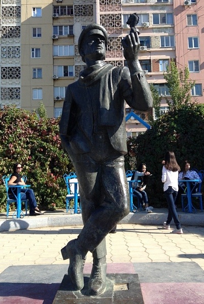 В Элисте много памятников, один из которых особенно привлёк внимание. Это памятник известному литературному персонажу Остапу Бендеру, рядом с которым полукругом располагаются знаменитые двенадцать стульев.