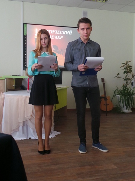 На отделении сервисных технологий состоялось открытое внеклассное мероприятие «Поэтический вечер». Его провели студенты специальностей «Гостиничный сервис» и «Туризм» 2-х и 3-х курсов под руководством Тамары Анатольевны Лариной.