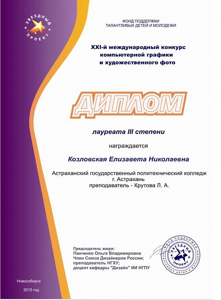 С 25 июля по 30 октября 2015 года проходил XXI Международный открытый интернет-конкурс компьютерной графики и художественного фото, в котором принимали участие учащиеся общеобразовательных учреждений, учреждений дополнительного образования, студенты вузов от 7 до 25 лет. Конкурс проводился с целью выявления юных талантов в области изобразительного искусства и фотоискусства по инициативе Фонда поддержки талантливых детей и молодежи, а также с целью развития творческого потенциала обучающихся, привлечения их к активному использованию информационных технологий в практической деятельности.