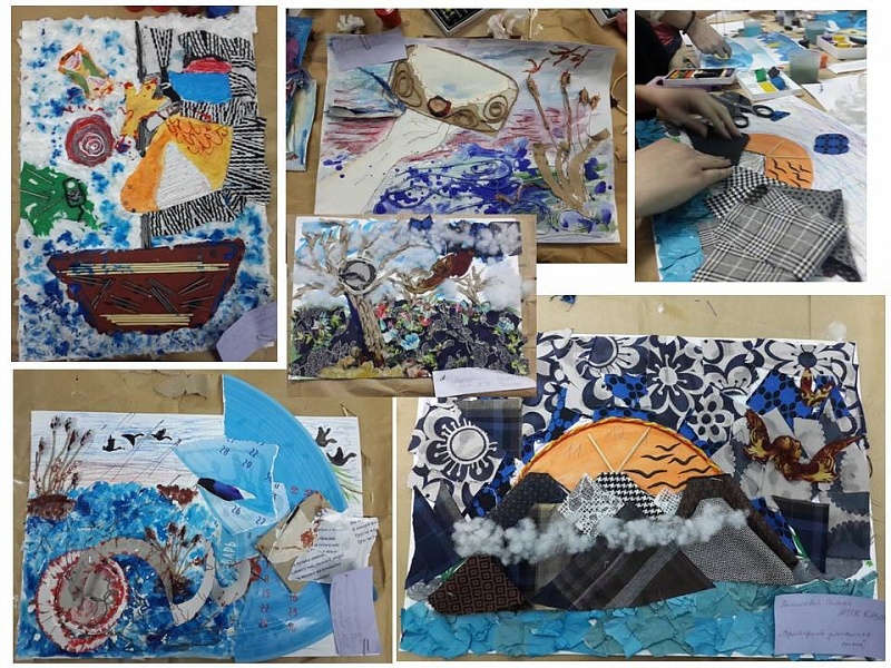 Соответствуя тематике того времени, студенты, под руководством А.В.Кваша выполняли коллаж на тему «Время» из обычных материалов, встречающихся в повседневности: оберточная бумага, веревки, лоскутки ткани, краски, палочки и даже гвозди и синдипон. Такая деятельность способствовала не только познанию техники необычного коллажа, но и позволила студентам прикоснуться к духу далекого времени.