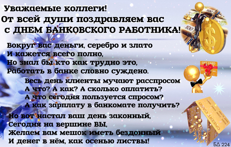 Пусть профессия ваша будет всегда востребована, в почете, счета оплачиваются во время, ставки растут, кредиты возвращаются, депозиты пополняются!