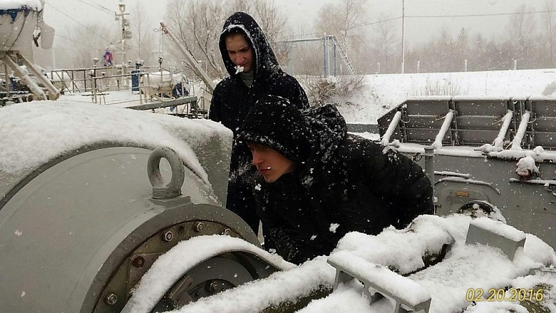 В пункте базирования кораблей Каспийской флотилии прошел День открытых дверей. Несмотря на сильный снегопад, на набережной собрались больше сотни человек, в том числе и студенты механического отделения из групп СП 111 и АТП 220.