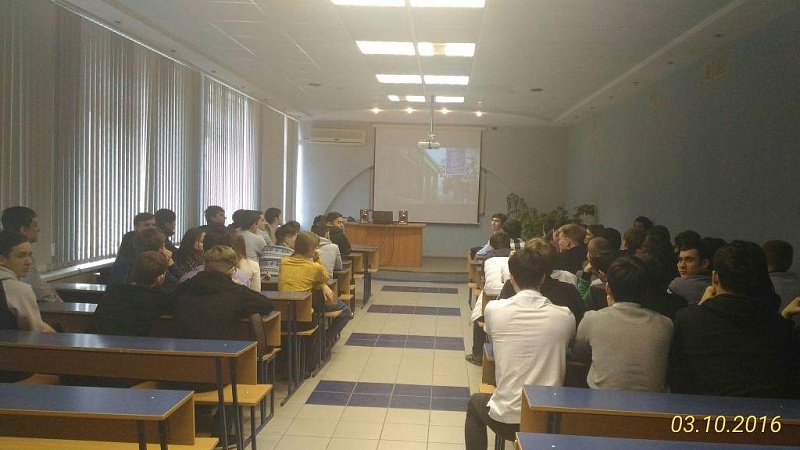 Студентам было рассказано о безопасности на дорогах. Инспектор ГИБДД привела статистику дорожных происшествий в нашем городе с участием детей, и не только. Был показан фильм о наиболее распространённых ошибках поведения участников дорожного движения - пешеходов и водителей.