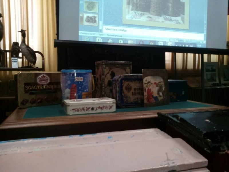 Будующие товароведы с интересом рассматривали копии старинных фотографий зданий кофейни и фабрики, рекламы продукции торгового дома «К.А. Шарлау С-вья», разнообразные бонбоньерки (красиво оформленные коробки для конфет) из фондов Астраханского музея - заповедника.