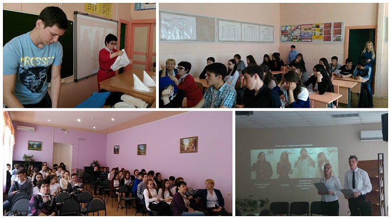 В рамках мероприятий на базе СОШ №27, СОШ №24, СОШ №13, СОШ №6, Новоурусовской СОШ и др. было запланировано масса различных форм работы: демонстрация видеороликов, проведение мастер-классов, выступление команды КВН и др. Выпускники школ в дружной, общительной обстановке могли задать все интересующие их вопросы: об учебном процессе, проживании в общежитии колледжа, дополнительных занятиях в кружках и секциях.
