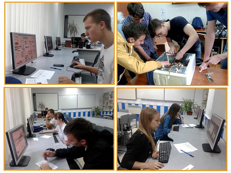 Суть: каждая команда состояла из 5 участников, которые расположились в 5 аудиториях главного корпуса. Перед началом марафона всем командам объяснили правила и этапы игры. На первом этапе (ауд.107) командам предстояло разгадать непростую криптограмму. Только выполнив задание этапа участник мог получить часть итогового кода и передать "эстафетную палочку" своему товарищу по команде. На втором этапе (ауд.201) участникам досталось интересное и , казалось бы, легкое задание - сыграть в игру "Пятнашки" с компьютером. Надо заметить, что студенты с легкостью выполнили это задание. Время выполнения - от 1 мин до 6 минут (преподавателям следует задуматься над тем, чем занимаются студенты на уроках, потому как некоторые из участников тренировались именно в это время). На третьем этапе (ауд.209) студентам предложили выполнить поиск информации в Интернет. Им следовало по обрывкам надписей обозначить известные поисковые системы, а также по изображению найти автора картины, указать ее название и год создания. Помимо этой информации студентам необходимо было указать: Что находится в верхнем углу картины? Задание вызвало определенные трудности, особенно у студентов младших курсов (гр.ИС, КС) и дизайнеров. Четвертый этап (ауд.221)был особо привлекательным для студентов специальностей группы "Информатика и вычислительная техника", т.к. представлял собой задание по сборке персонального компьютера.И хотя по правилам игры собирать компьютер должен был один участник, подключилась вся команда, т.к. сборка-то была на скорость! На пятом этапе (ауд.210) участники рисовали в графическом редакторе MS Paint. Задание было взято из олимпиадных примеров Всероссийского конкурса по информатике и вызвало определенные затруднения у ребят. Задание называлось "Загадочный рисунок", т.е. студенты не знали, что в итоге должно было получиться. Интересно!. На заключительном этапе (ауд.107) все снова собрались в аудитории, где проходил старт конкурса. Там надо было собрать все коды, имеющиеся у членов команды и собрать из них слово. Каждый листок с промежуточным кодом представлял собой слог этого слова. Нелегко пришлось командам! Но, всё же, разум взял верх!