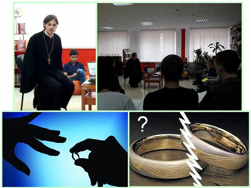 14 ноября в зале интеллектуального отдыха библиотеки прошло очередное мероприятие в рамках проекта «Создание православного информационно-религиозного центра для молодежи». На вечере вопросов и ответов «Ранние браки: за и против» присутствовал иерей Успенского кафедрального собора Максим Павлович Бурдин. Он рассказал молодым пользователям библиотеки о положительных и отрицательных аспектах вступления в ранний брак с точки зрения церковной и общечеловеческой морали, а также ответил на все интересующие вопросы. Встреча вызвала живой интерес у присутствующих на ней студентов.