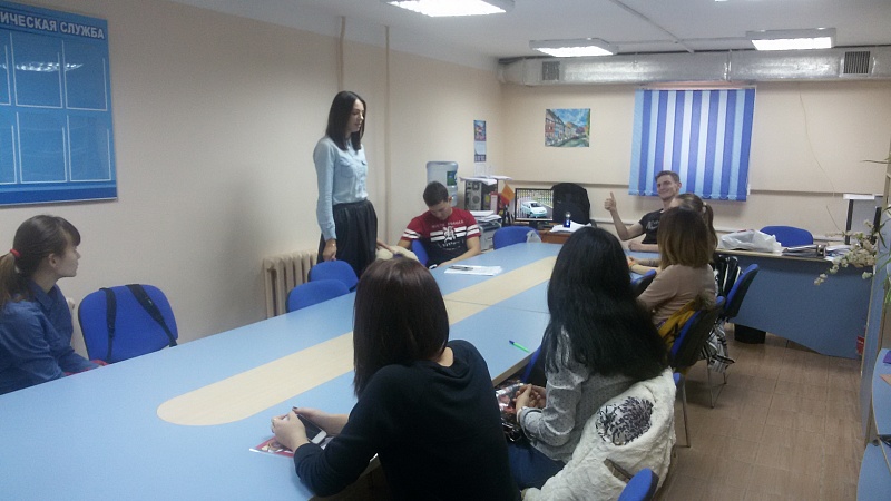 По ходу встречи специалист Центра показала небольшую презентацию и видеоролик о деятельности своей организации. Многих студентов заинтересовало то, чем занимается учреждение. Все присутствующие обменялись контактами с Ириной Сергеевной.
