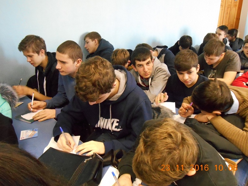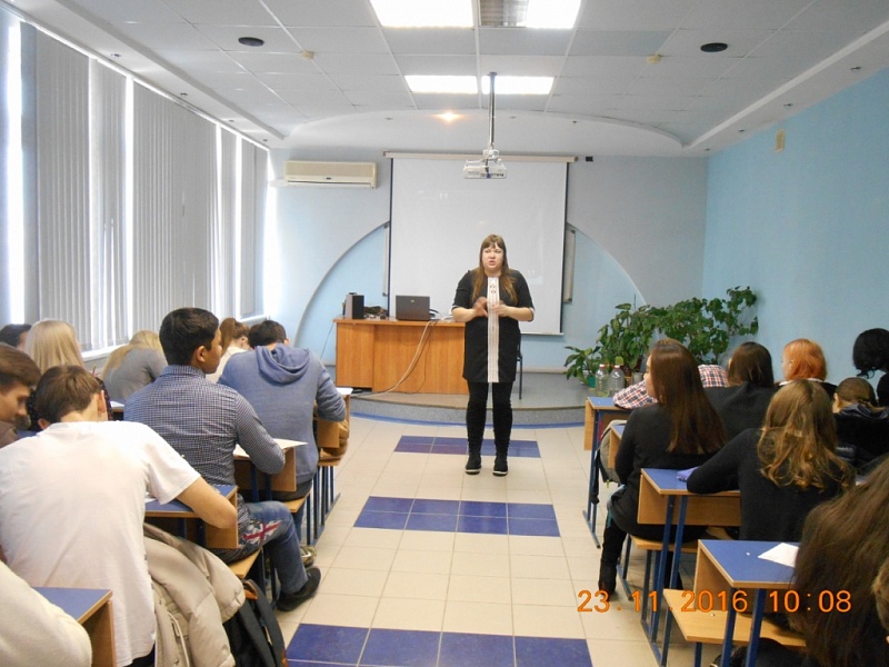 23 ноября, в преддверии Всероссийской акции «Стоп! ВИЧ/СПИД» кураторы группы СП 111-9 и РЭМ 142-9 Столярова Н.С. и Трофимова Т.В. провели классный час на тему: « Чума XXI века», пригласив психолога «Областного центра профилактики и борьбы со СПИД» Ольгу Сергеевну Дорофеева.