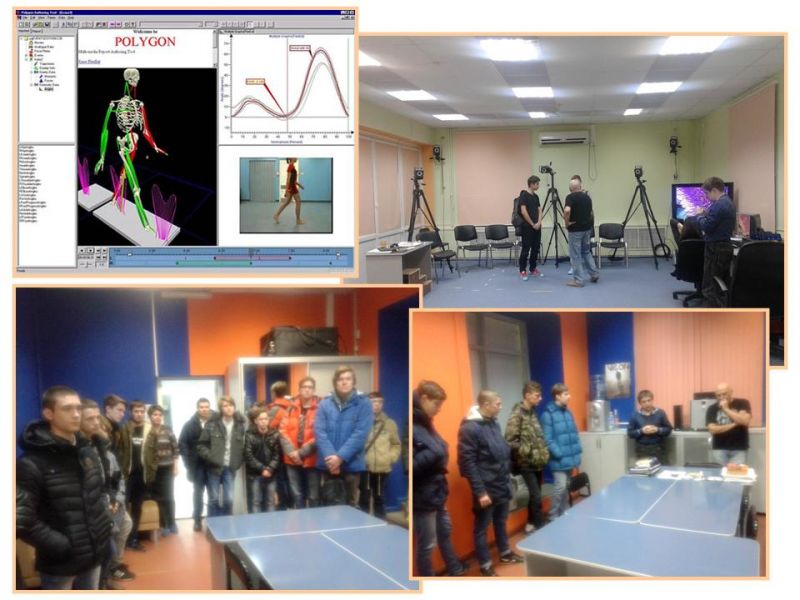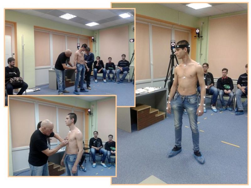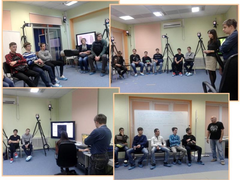 Специалист Центра Мазин Игорь Геннадьевич рассказал студентам о том, что такое биомеханика, а также о методике исследований в области медицины. На примере одного из присутствующих студентов был построен каркасный графический объект с помощью прикрепленных к студенту датчиков. Таким образом, присутствующие смогли воочию убедиться тому, как проводится диагностика состояния опорно-двигательного аппарата человека. Баранец Марина Сергеевна, специалист Центра, рассказала о физических основах построения изображения и продемонстрировала некоторые приемы работы с ним в программе Vicon Polygon. В заключение Казин Дмитрий Александрович, специалист Центра, поведал студентам о разработке приложения, в основе которого взаимодействие медиков с пациентами через облачные сервисы, включающие, в том числе, регистрацию результатов упражнений, достигнутых в специализированной игре на Xbox 360 и полученных с помощью популярного бесконтактного игрового контроллера Kinect. Такой подход может использоваться для оценки двигательных функций организма человека, а врач сможет выявлять имеющиеся различные заболевания опорно-двигательного аппарата. Система диагностики, включающая несколько датчиков Microsoft Kinect способна за достаточно короткий промежуток времени составлять 3D-изображение туловища пациента, что дает возможность наиболее точно оценивать движения человека и позволит специалистам упростить процесс установления диагноза.