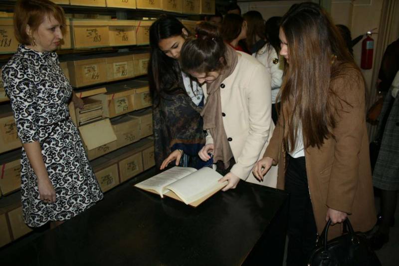 Сюрпризом для студентов стала экскурсия в архивохранилище. У студентов вызвала много эмоций обстановка, царящая в хранилище, студенты увидели газеты, книги, фотографии, документы, которым свыше 100 лет.