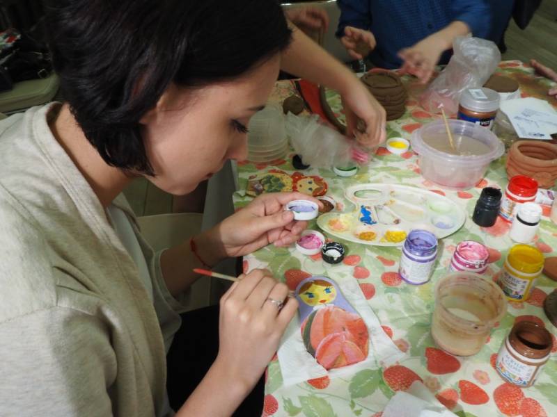 Студенты отделения сервисных технологий группы ТУ-223, ТУ-323 и ГС-216 приняли участие в мастер-классе «Русский сувенир». Они расписывали русскую матрешку.