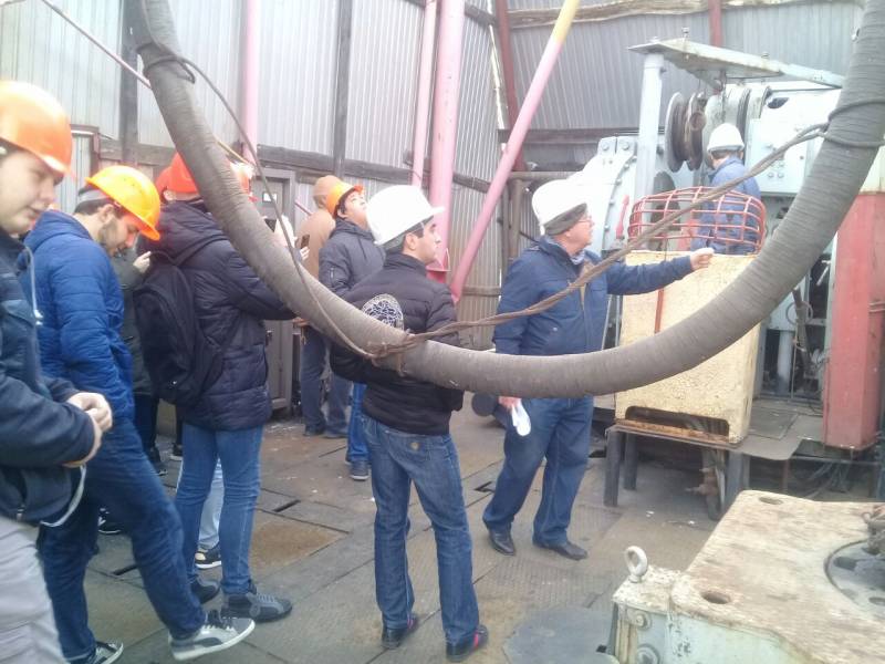 24 ноября студенты механического отделения специальности «Переработка нефти и газа» побывали на учебно-практической экскурсии в учебном центре «Досанг». В ходе экскурсии по предприятию студенты познакомились с буровой установкой, технологией добычи нефти и основным оборудованием, необходимым при разработке месторождения.