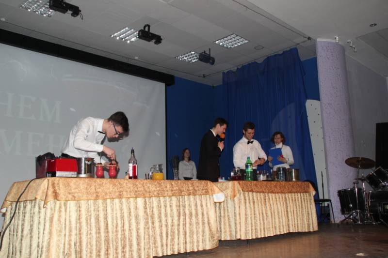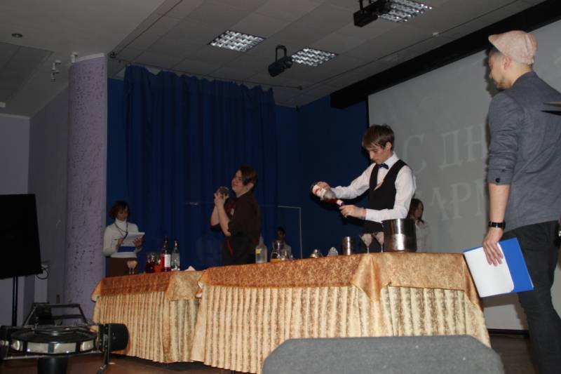 На отделении сервисных технологий отпраздновали Международный День бармена. Был организован конкурс среди барменов, ими было продемонстрировано, как правильно держать в руках шейкер, студентам рассказали, как много должен знать и уметь бармен: этикет, правила сервировки, рецепты напитков, сочетаемость продуктов. Так же конкурсанты показали, как виртуозно могут жонглировать различными предметами в процессе приготовления напитков.